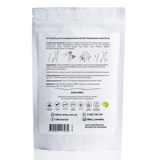 - Скраб для тіла парфумований Hillary Nude Beauty Body Scrub, 100 г.