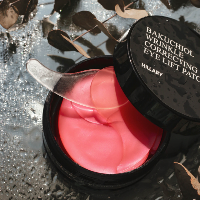 Ефективні патчі під очі з рожевою водою та бакучіолом для синергічної дії: розгладження зморшок, освітлення шкіри та ліфтинг-ефект.