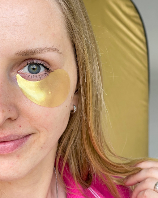 - Нанесіть гідрогелеві патчі на чисту суху шкіру під очима на 15-20 хвилин вранці, ввечері або при необхідності. Можна також наносити на носогубні складки, лоб чи шию.