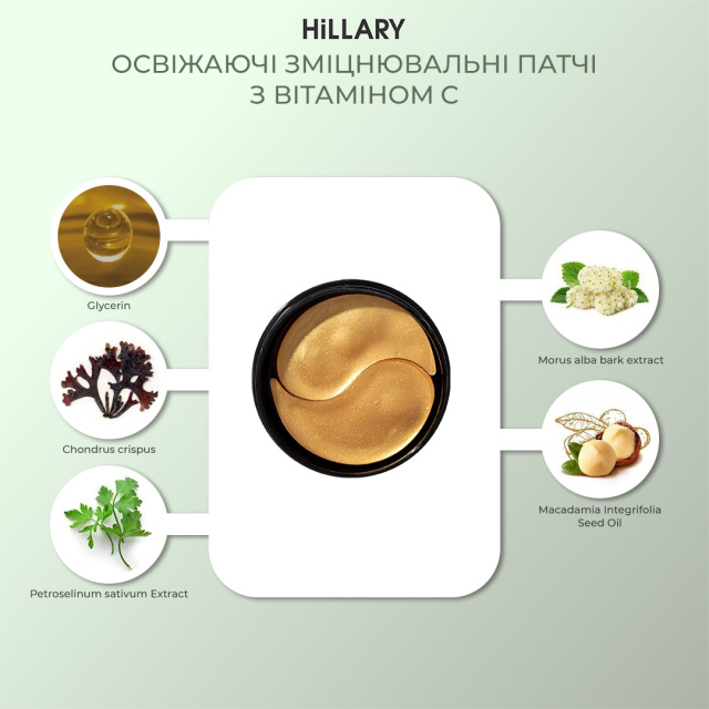 - Освіжаючі зміцнювальні патчі з вітаміном С Hillary Vitamin C Refreshing & Firming Eye Patches, 60 шт;