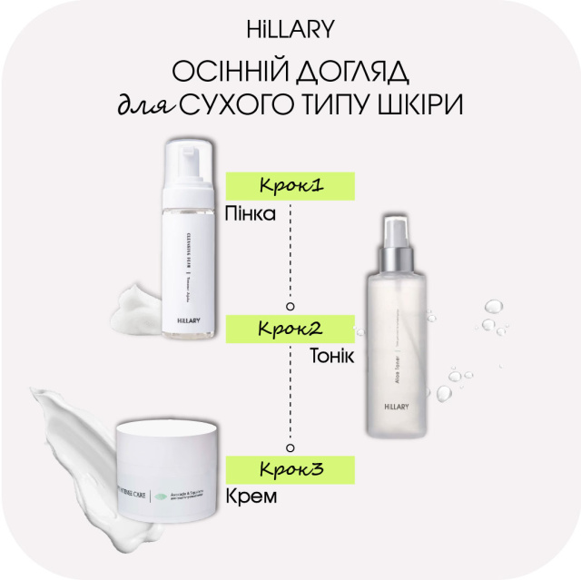 - Очищуюча пінка для сухої та чутливої шкіри Hillary Cleansing Foam Squalane + Avocado oil, 150 мл.