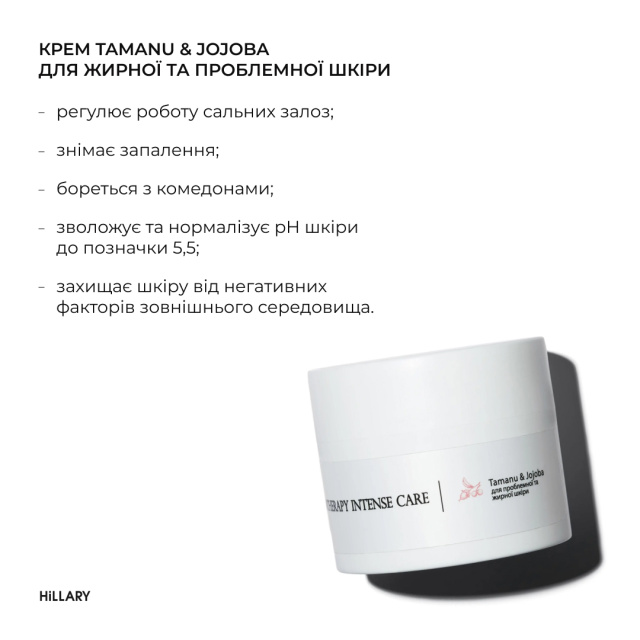 - Крем для жирної та проблемної шкіри Hillary Corneotherapy Intense Сare Tamanu & Jojoba, 50 мл;