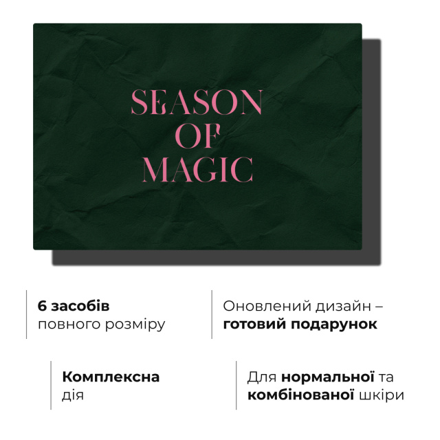 Набір допомагає боротися з тьмяністю, нерівною текстурою, періодичним жирним блиском, сухістю в окремих зонах, почервоніннями та втратою тонусу. При регулярному використанні шкіра стає більш гладкою та свіжою, звужуються пори, а тон обличчя вирівнюється. Підвищується зволоженість та пружність, зникає відчуття стягнення, а природне сяйво повертається щодня.