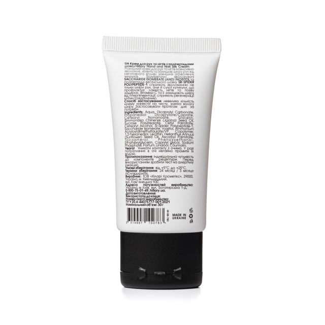 - Крем для рук та нігтів з поліпептидами шовку Hillary Hand and Nail Silk Cream, 30 мл