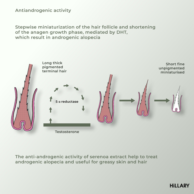 Шампунь проти випадіння волосся припинить лущення різної природи, в тому числі і грибкові, наприклад себорею, покращить зовнішній вигляд волосся, зробить його блискучим та гладеньким, стимулює волосяні фолікули, активізує в цибулинах посилений кровообіг, нормалізує роботу сальних залоз шкіри голови та зробить волосся більш об’ємним. Кондиціонер для активного зволоження, живлення і відновлення волосся зробить волосся м'яким, шовковистим, еластичним і пружним. Зменшить пористість, збільшуючи природний блиск. А Висококонцентрований комплекс для волосся з екстрактом карликової пальми CONSENTRATE SERENOA призначений для активації волосяних фолікулів, що знаходяться у фазі сну. Відновлює волосся, надає йому сили, робить слухняним.