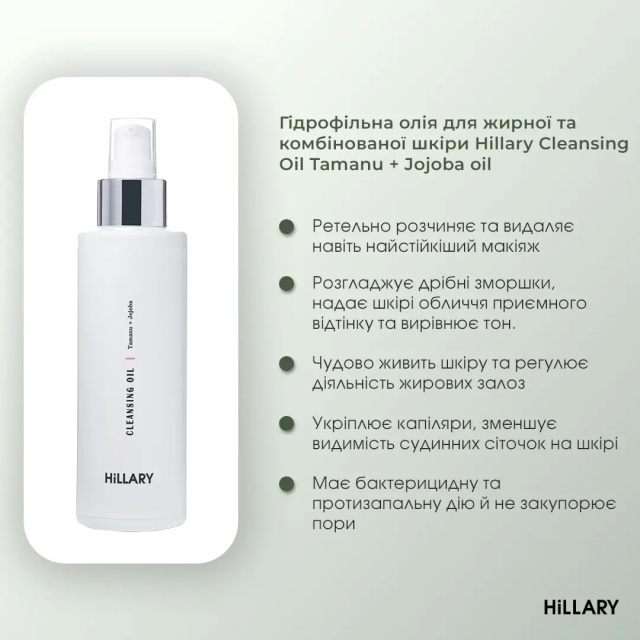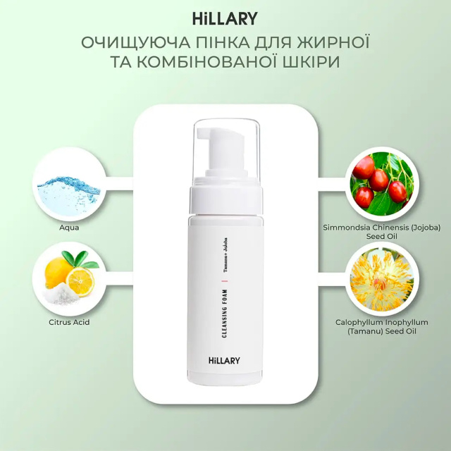 - Очищуюча пінка для жирної та комбінованої шкіри Hillary Cleansing Foam Tamanu + Jojoba oil, 150 мл;