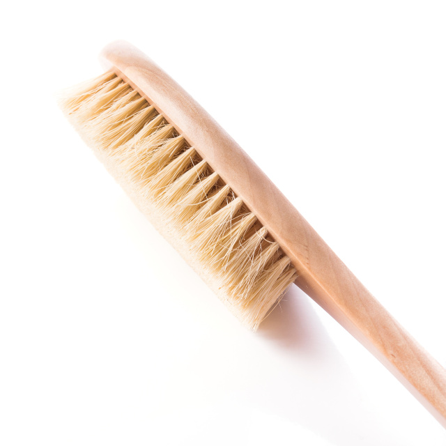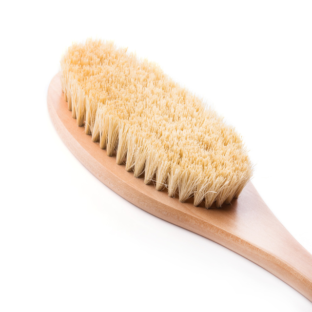 Масажна щітка зі щетиною з сизалю вирівнює рельєф шкіри та контури тіла, підвищує еластичність і пружність шкіри, сприяє відлущенню омертвілих клітин епідермісу та стимулює обмінні процеси.