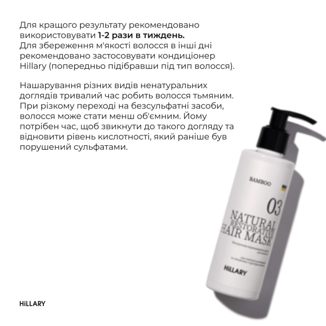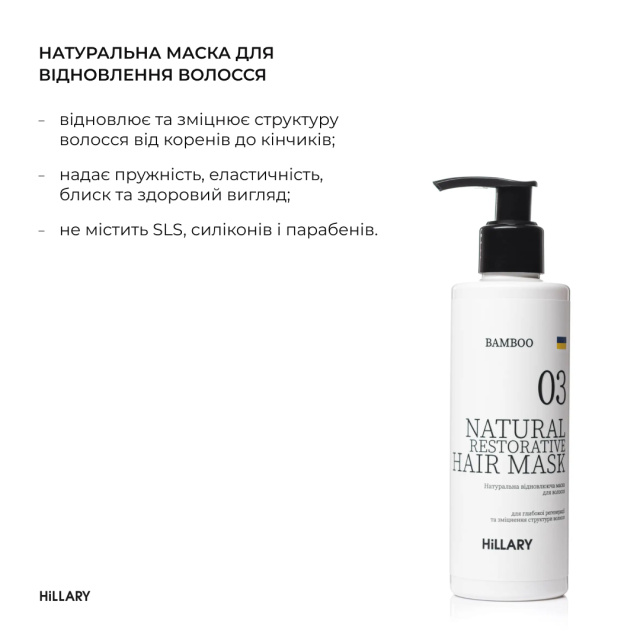 - Натуральна маска для відновлення волосся Hillary BAMBOO Hair Mask, 200 мл