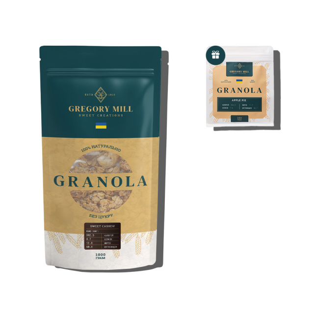 Набір граноли Mini Sweet Cashew, 1 кг & Apple Pie, 250 г у подарунок Gregory Mill, Київ