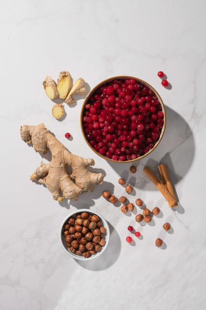 Ця гранола містить у собі цілющу силу імбиру, насичений аромат кориці, вишуканий смак журавлини та бадьорість фундука. Відкрийте для себе силу смаку і здоров'я у кожній ложці!