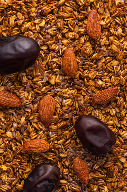 Гранола Gregory Mill Finik - вишукане поєднання солодкого фініку з хрустким мигдалем. Фініки здавна символізують життя та плодючість, адже про їх користь відомо з древніх часів. Саме тому ми використовуємо відбірні королівські фініки, щоб збагатити смак граноли цією величчю смаку.