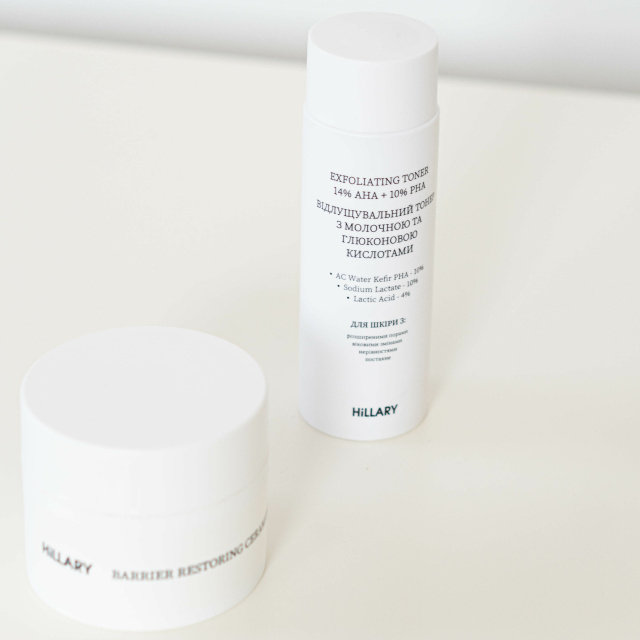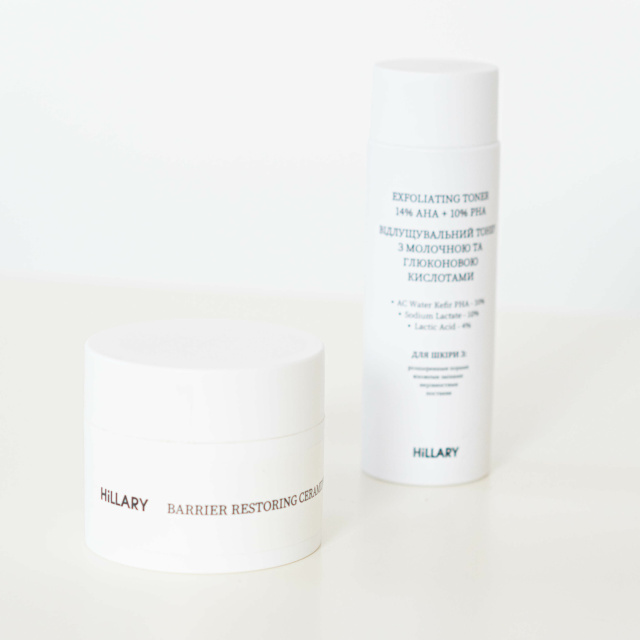 Відлущувальний тонер 14% AHA + 10% PНА + Відновлювальний крем з керамідами та постбіотиками, Київ