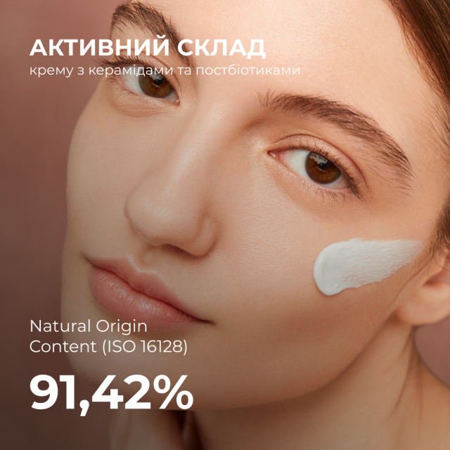 Захисний крем з комплексом лактобактерій, рослинними керамідами та оливковим скваланом відновлює природний бар’єр шкіри, забезпечуючи інтенсивне зволоження та захист від зовнішніх факторів. Ідеальний після кислотних пілінгів та ретинолу.