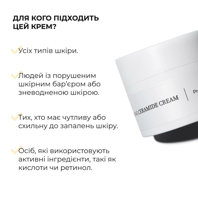 Відновлювальний крем з керамідами та постбіотиками сприяє відновленню шкірного бар’єру після очищення та активного догляду.
