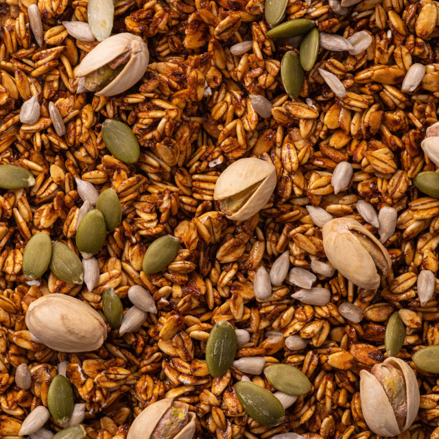 Ви сидите під сріблястим ранковим сонцем, а музика смаку розпочинається з найніжніших нот фісташок, гарбузового насіння та насіння соняшнику.