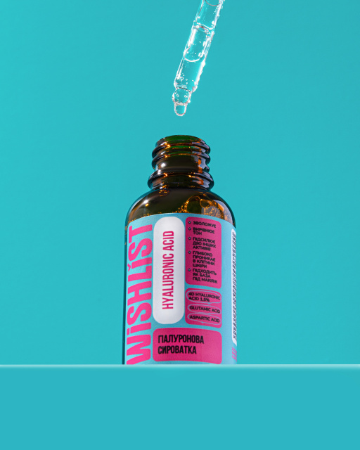 – ГІАЛУРОНОВА СИРОВАТКА WiSHLiST HYALURONIC ACID, 30 МЛ утримує вологу, проникаючи в глибокі шари шкіри. Вона допомагає підтримувати пружність і еластичність, забезпечуючи тривале зволоження без обтяження.