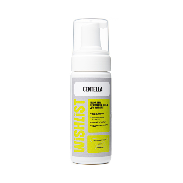 – НІЖНА ПІНКА З ЕКСТРАКТОМ ЦЕНТЕЛЛИ ДЛЯ ВМИВАННЯ WiSHLiST CLEANSING FOAM, 150 МЛ очищає шкіру, делікатно видаляючи забруднення, при цьому підтримуючи м’якість і зволоженість.