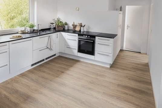 EL1089 Дуб Тосколано натуральний – декор з гамою натуральних кольорів, що імітує текстуру деревини, виконаний у вінтажному стилі. Поверхня ламінату матова. Текстура включає хвилеподібні візерунки річних кілець та помітні потертості. Приємний дизайн користується великим попитом. Крім того, ламінат відрізняється особливою простотою у догляді та чищенні. Не зважаючи на невисоку ціну, ламінат EL1089 Дуб Тосколано натуральний володіє синхронною структурою поверхні – натурально копіює рельєф справжньої дубової дошки та дарує відчуття натуральної підлоги. Підійде для поціновувачів лаконічного дизайну.