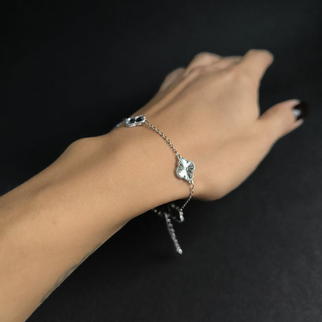 Родированный серебряный браслет 925 пробы без камней. Родированные украшения дольше сохраняют свое первоначальное состояние, а именно цвет и блеск металла. Все ювелирные изделия представленные на нашем сайте прошли внутренний контроль качества, а также контроль государственной пробирной службой Украины, на всех изделиях стоит соответствующая проба. К каждому ювелирному украшению прилагаются бирка указанием всех параметров.*Цвета изделий на сайте могут незначительно отличаться от реальных из-за особенностей цветопередачи экрана