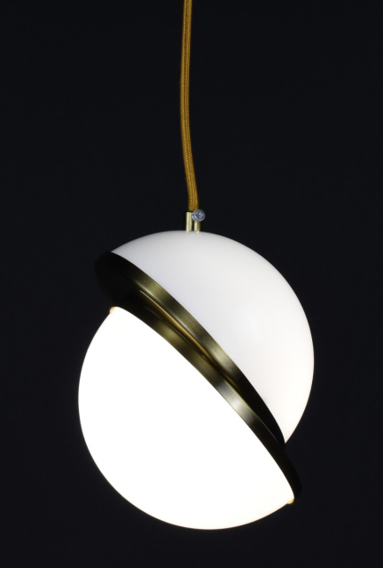Подвесной светильник в виде двух полусфер, высота регулируеться, шар изготовлен из пластика, патрон E27, крепление к потолку на планку, основа диаметром 10 см.