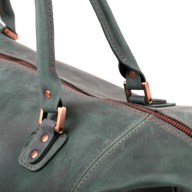 Дорожня шкіряна сумка зелена, саквояж на блискавці, сумка для спортзалу, фітнеса містка велика міцна з натуральної шкіри ВІНТАЖ crazy horse.