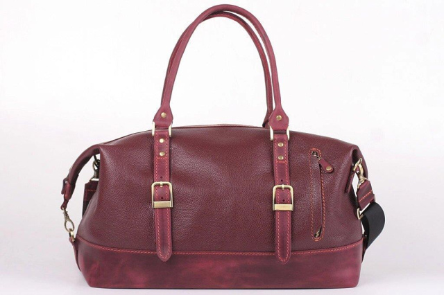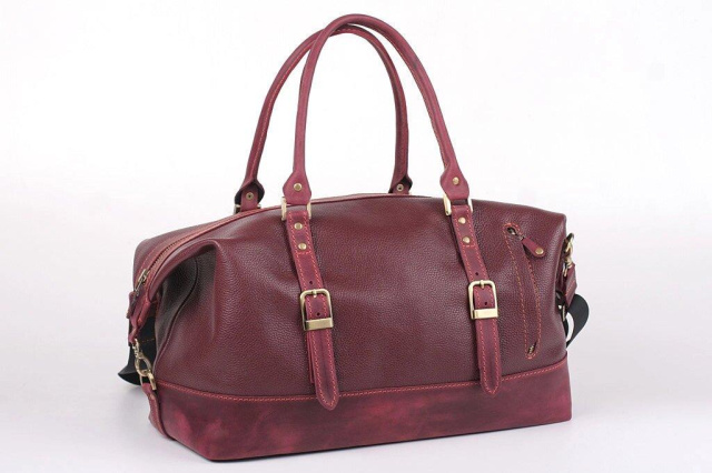 Дорожня сумка жіноча шкіряна бордова, спортивна якісна виготовлена з натуральної шкіри двох видів: класична шкіра флотар із зернистою фактурою і ВІНТАЖНА шкіра з оригінальними потертостями, подряпинами та неоднорідністю забарвлення (що не є браком).