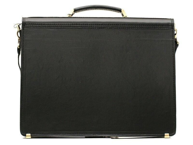 Чорний портфель зі 100% натуральної шкіри. Респектабельний дизайн, якісне пошиття.