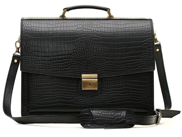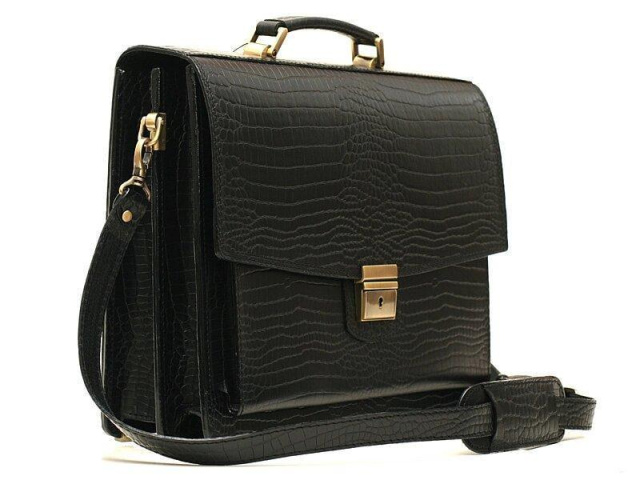 Портфель ручної роботи з шкіри під крокодила Чорний (1939517746), Київ