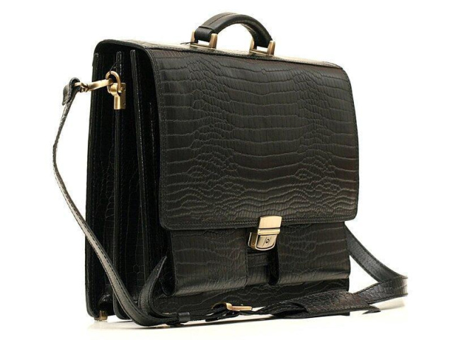 Портфель ручної роботи з шкіри під крокодила Чорний (1939517748), Київ