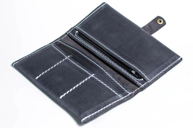 - Три слоти для карток, відділення на блискавці, два відділення для купюр