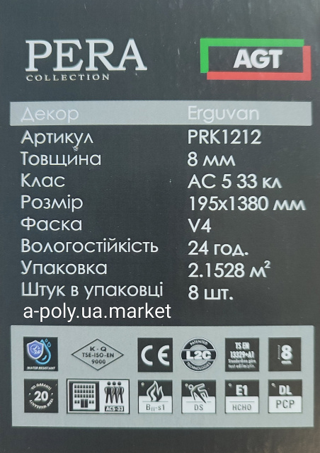 Ламінат вологостійкий AGT Pera Erguvan PRK1212 товщина 8 мм 33 клас зносостійкості з фаскою V4, продаж кратно упаковкам.