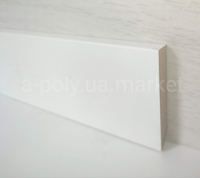 Плінтус МДФ DEPRO Білий 80 х 12 х 2400 мм 3039554 висота 80 мм товщина 12 мм довжина 2400 мм. Продаж плінтуса кратно планці (мінімальне замовлення 5 шт. або 12 м.п.) Наявність уточнюйте у менеджера!