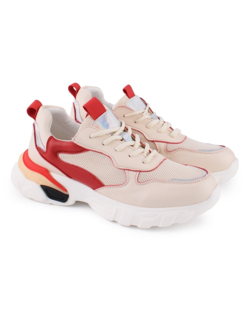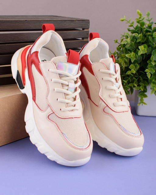 Жіночі червоно-бежеві кросівки на шнурівці, Київ
