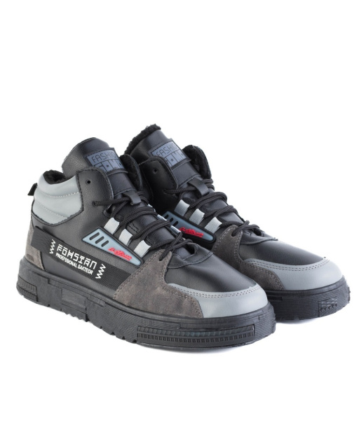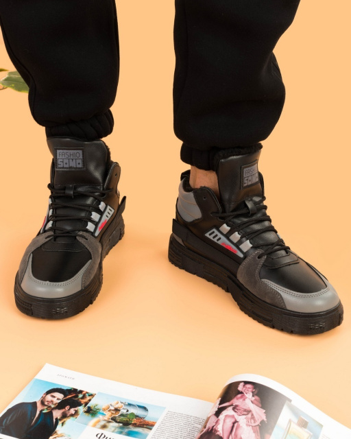 Чоловічі зимові чорно-сірі кросівки на шнурівці, Київ