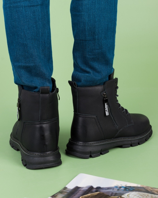 Чоловічі зимові чорні черевики із еко-шкіри, Київ