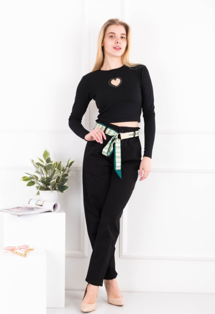 Колір: ЧорнийСезон: Весна/OсіньЛінія: ЖінкамМатеріал: Коттон / поліестер / спандексКраїна виробник: КитайПосадка: ЗавишенаВид товара: ОдягПродавець: