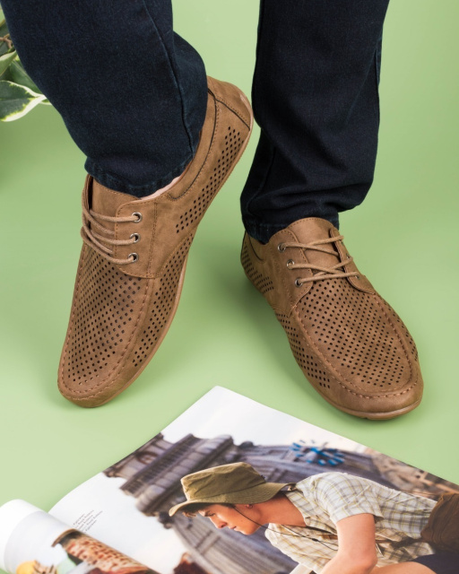 Каблук/Підошва: Низький хідТип носка: ЗакритийФорма: Закруглений носокКолір: КоричневийСезон: ЛітоЛінія: ЧоловікамМатеріал верху: ЕкозамшаКраїна...