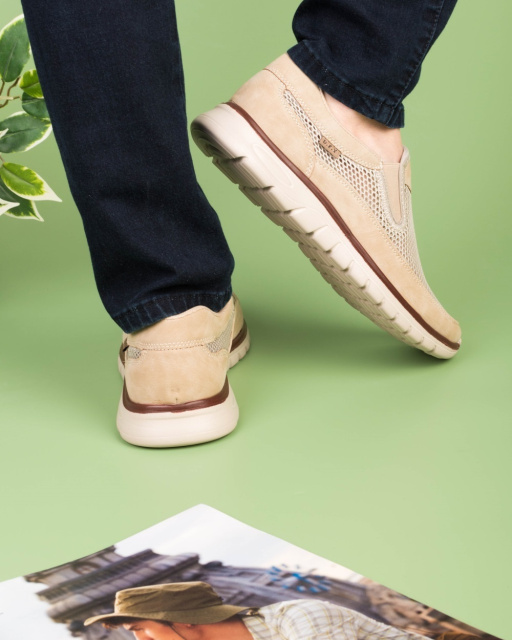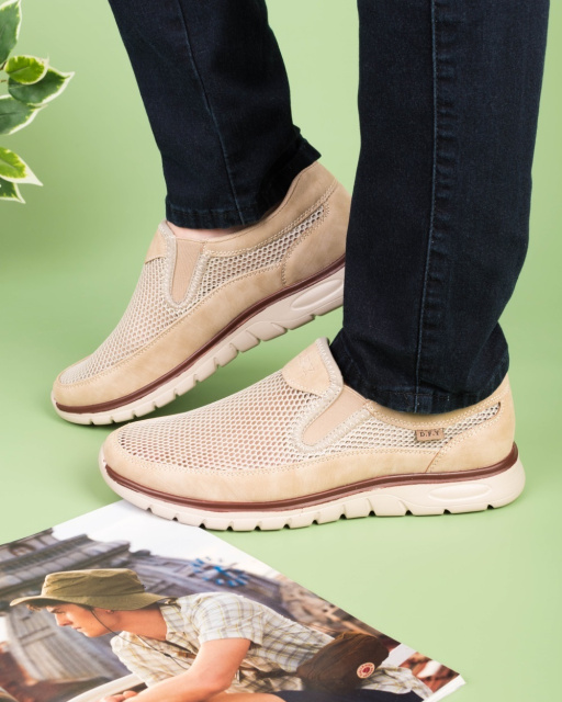 Каблук/Підошва: Низький хідТип носка: ЗакритийФорма: Закруглений носокКолір: БежевийСезон: ЛітоЛінія: ЧоловікамМатеріал верху:...