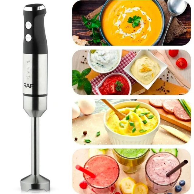 Ручной блендер погружной с металлической ножкой 2 скорости RAF 317 1000 Вт - это мощный и надежный кухонный инструмент, созданный для быстрого и удобного приготовления любых блюд. Благодаря высокой мощности 1000 Вт и металлической погружной насадке модель подходит как для домашнего использования, так и для профессиональных задач.