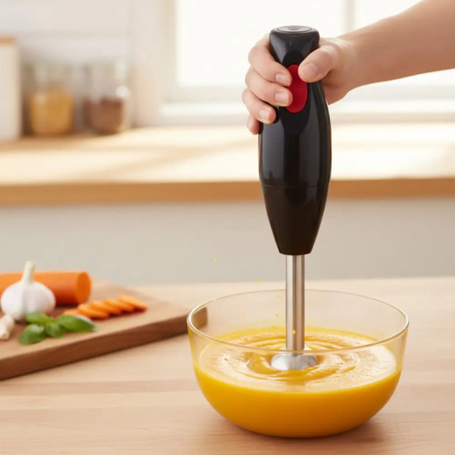 Ручной блендер BN-0100 - это практичный и многофункциональный помощник на вашей кухне. Он позволяет быстро приготовить пюре, смузи, соусы и супы всего за несколько минут. Острые лезвия из нержавеющей стали обеспечивают равномерное измельчение ингредиентов, а компактный дизайн и лёгкий вес делают использование максимально удобным.
