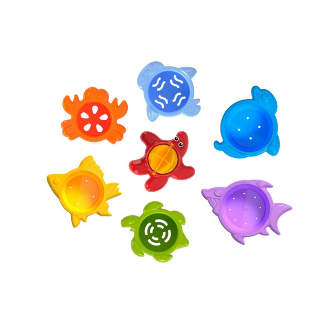 Но кроме развлечений, еще и обучения. Построить и разрушить пирамиду, изучить цвета, размеры, формы, познакомиться с морскими жителями, и сделать первые шаги в счете. А еще множество идей, которые придумает Ваш малыш. Ведь такая игрушка хорошо развивает мелкую моторику, координацию, память, логику и воображение.