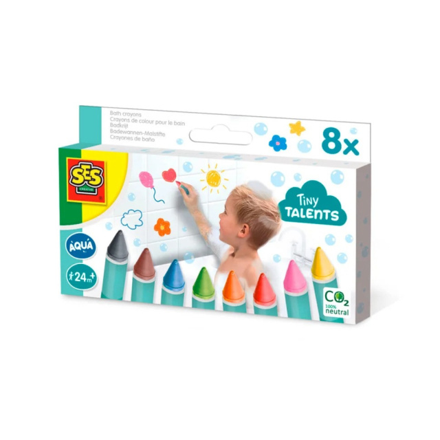 В набор входит: 8 разноцветных восковых карандашей для ванной.