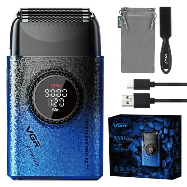 Главная особенность модели - регулируемая скорость работы двигателя в диапазоне от 7000 до 9000 оборотов в минуту с 21 уровнем мощности. Это позволяет адаптировать бритву под индивидуальные особенности кожи и жесткость щетины. Информативный LED-дисплей отображает текущий режим и уровень заряда, обеспечивая полный контроль в процессе бритья. Эргономичный корпус в стильном синем цвете удобно лежит в руке, а аккумулятор с зарядкой через USB Type-C делает электробритву VGR V-377 отличным выбором как для дома, так и для поездок.