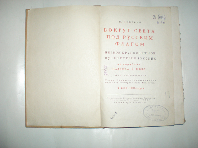 У книзі В. Невського описується історія першої навколосвітньої подорожі на кораблях `Наодягу' і `Нева' під начальцем Флота капітан-лійтенантів Івана Крузенштерна та Юрія Лисянського у 1803-1806 роках.