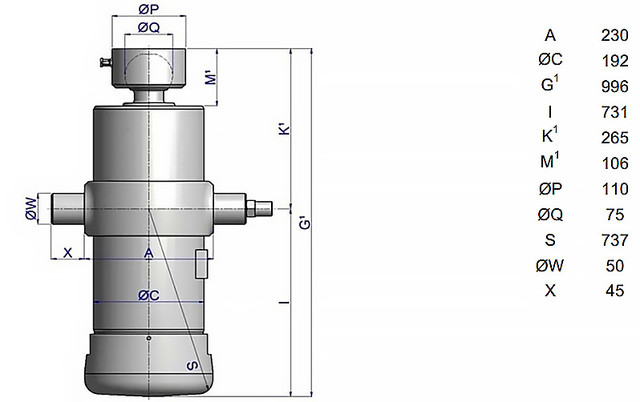 Характеристики гідроциліндра UMB 169-4-2980-K265-50-3/4-HC (71406851)