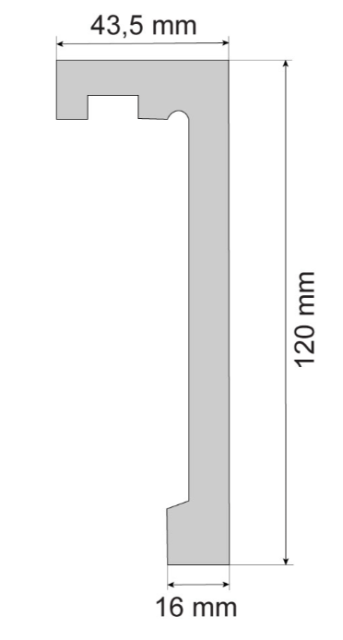 Карниз Cezar LK-03 білий мат. Висота 120 мм. Товщина 16 мм. Ширина 43,5 мм Довжина 2440 мм.