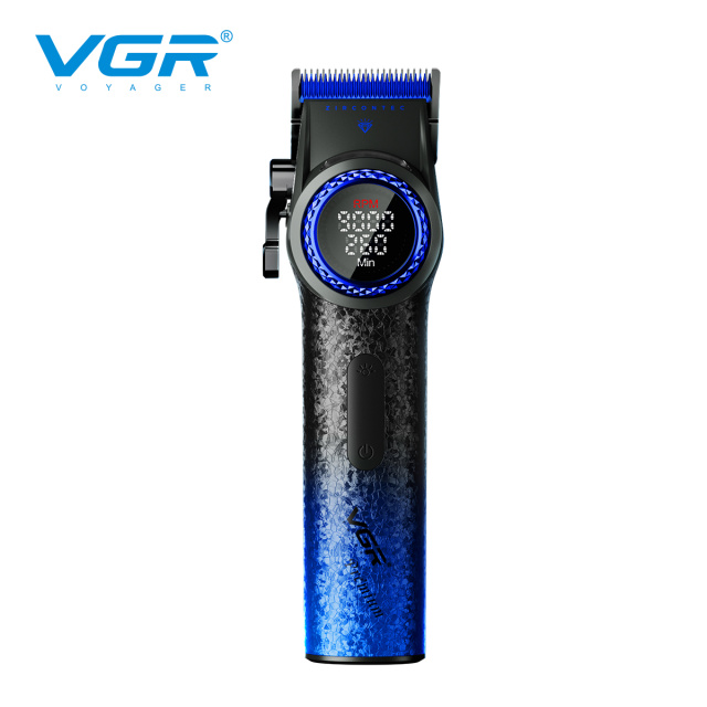 Професійна машинка для стрижки волосся VGR V-001 BLUE з дисплеєм 9000 об/хв та 10 насадками 1,5-24 мм, Київ