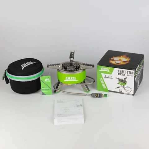 Модель пальникаBRS-73 має три конфорки, що працюють синхронно. Це створює масивний потік полум'я, що дозволяє нагріти 1 літр води менш ніж за 4 хвилини. Газу при цьому споживається зовсім небагато. Цей виріб також можна застосовувати як мініатюрний мангал. Для виготовлення пальника були використані такі матеріали як алюміній, мідь, сталь, захищена від іржі. Підпал тут зовнішній, а як паливо використовується скраплений газ. Передбачено також жорсткий чохол у наборі для зручного зберігання та перенесення.