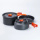 До складу виробів входить алюміній і вогнетривкий пластик, завдяки чому комплект вийшов міцним і захищеним від зовнішніх чинників. Металеві частини посуду виготовлені із застосуванням неіржавкої сталі, стійкої до абразивних впливів. Ручку можна складати в разі потреби. Крім того, ємності забезпечені антипригарним покриттям, що, звичайно, дуже практично. Посуд має міцні кришки. Усе продумано до дрібниць, щоб приготування їжі на природі не було пов'язане з жодними труднощами.