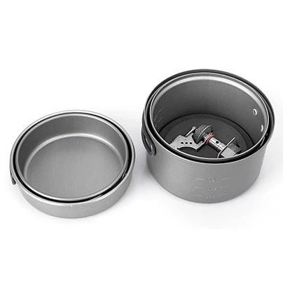 Набір складається з двох каструль об'ємом 0.8 і 1.2 л, газового пальника Kovea Supalite Titanium KB-0707 (сумісна з газовими балонами різьбового стандарту або з цанговими балонами через перехідник) та двох сковорідок-кришок з прогумованими ручками.